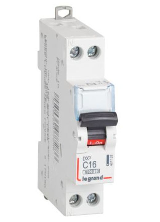 Interruptor automático magnetotérmico DX3 6000/10kA - 1P+N - 230 V - 16 A - curva C - 1 mód. Ref. 407728. Se pueden equipar con bloques diferenciales, mandos motorizados y auxiliares de mando y señalización DX3. Portaetiquetas incorporado.